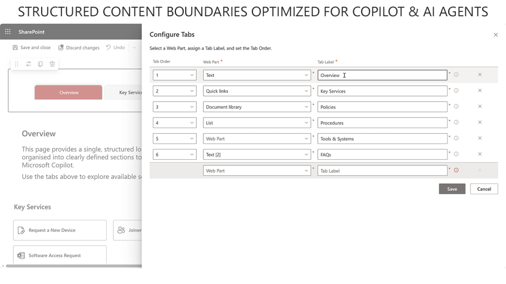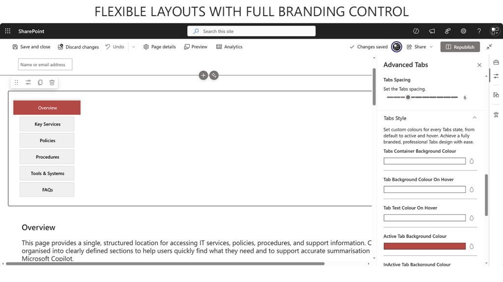 By introducing clear content segmentation, Advanced Tabs helps Microsoft Copilot and enterprise AI agents interpret page structure more accurately. Logical grouping improves contextual understanding and supports more precise information retrieval.